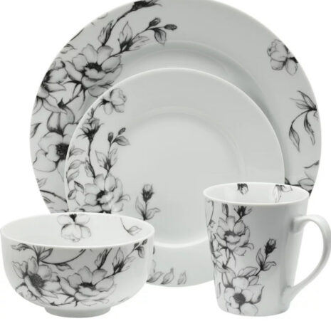 Ensemble de Vaisselle CANVAS Wild Rose 16 Pièces – Service de Table Complet – Motif Fleurs Sauvages – Céramique Résistante