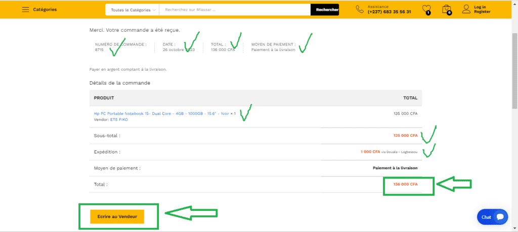 D’également noter le vendeur sur son service. Ceci aide les autres acheteurs à avoir une idée sur la qualité de service du vendeur d’une part et nous aide à prendre des mesures pouvant aller jusqu’à la fermeture de la boutique du vendeur dans notre e-market si nous enregistrons plusieurs plaintes du même vendeur.