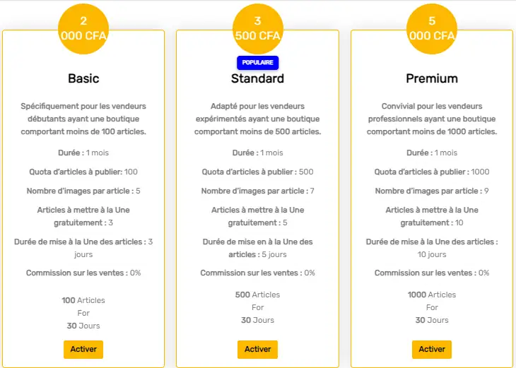 L’abonnement Premium est le meilleur choix pour les vendeurs sérieux qui veulent maximiser leur visibilité et leur activité sur la plateforme.