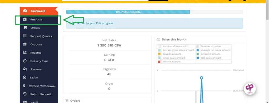 Rien de plus simple pour effectuer directement le paiement pour votre publicité de 7 jours. Connectez vous à votre compte. Puis cliquez sur Produits.