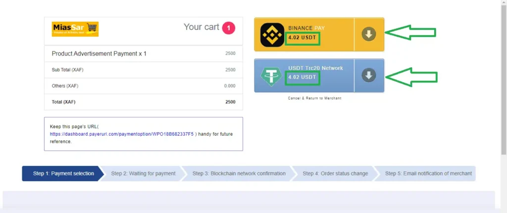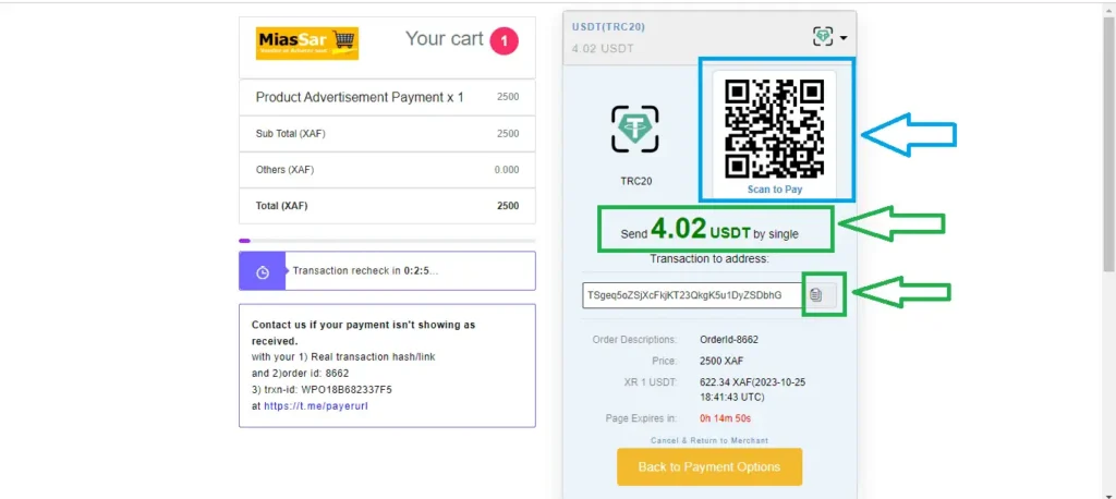 Vous pouvez payer par BINANCE PAY ou en USDT – TRC20.