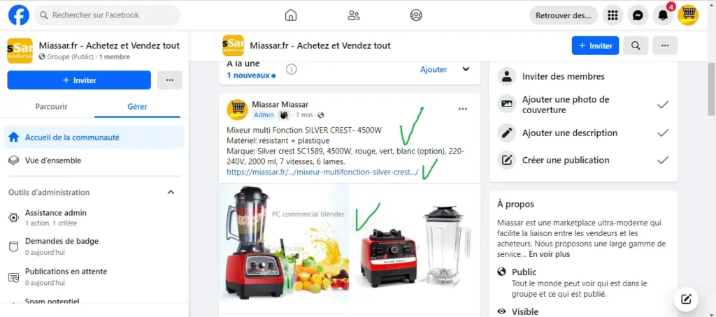 Je vous présente dans ce guide comment mettre vos produits A La Une dans notre marketplace et notre groupe Facebook.