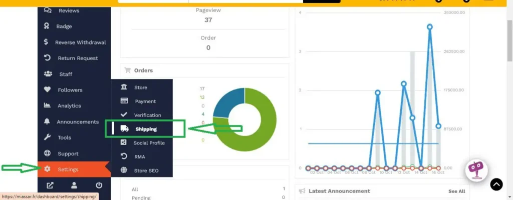 Cliquez sur paramètres ensuite cliquez sur expédition.