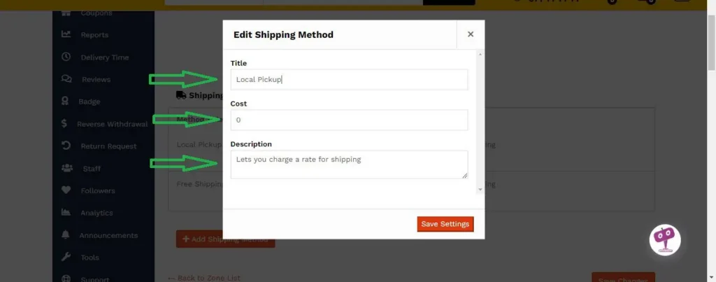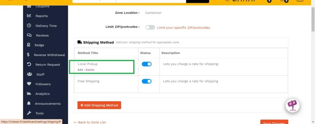 Vous pouvez apercevoir dans votre tableau de bord vos deux types de livraisons récemment ajoutés. Commençons par expédition locale. Cliquez sur éditer.