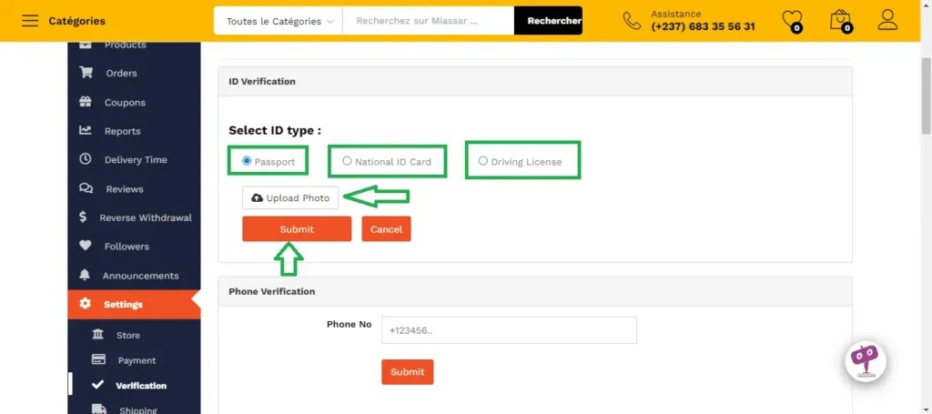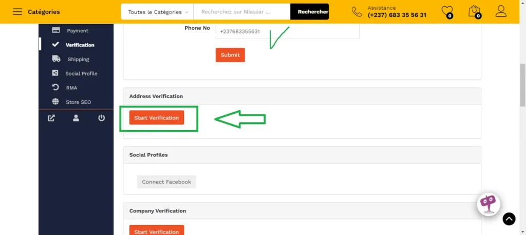 Afin d’éviter de traiter avec des vendeurs non vérifiés, chaque vendeur est contraint de vérifier son compte MIASSAR. Cette vérification permet de lui attribuer un badge de certification. Ceci lui permet de booster sa visibilité et sa crédibilité. C’est donc une étape incontournable. La vérification se fait en quelques clics.