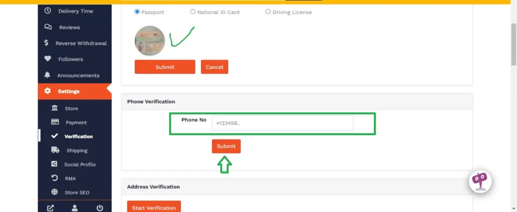 Ici nous avons choisi passeport. Ensuite cliquez sur télécharger une photo. Trouvez le document dans votre téléphone ou votre pc. Enfin cliquez sur Submit pour envoyez la vérification de votre pièce d’identité.