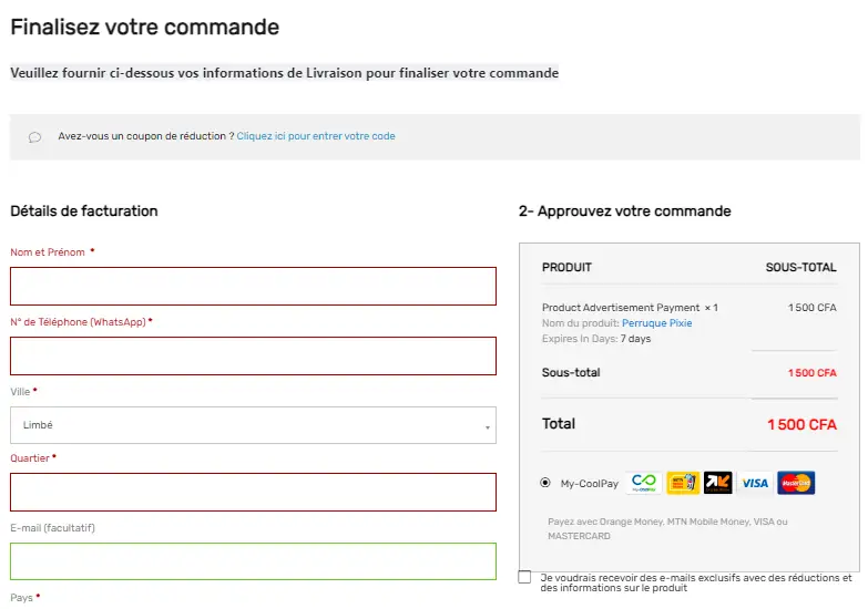 Remplissez le formulaire et validez le paiement. Cela activera la promotion et votre produit sera désormais visible en tant que vedette sur le site.
