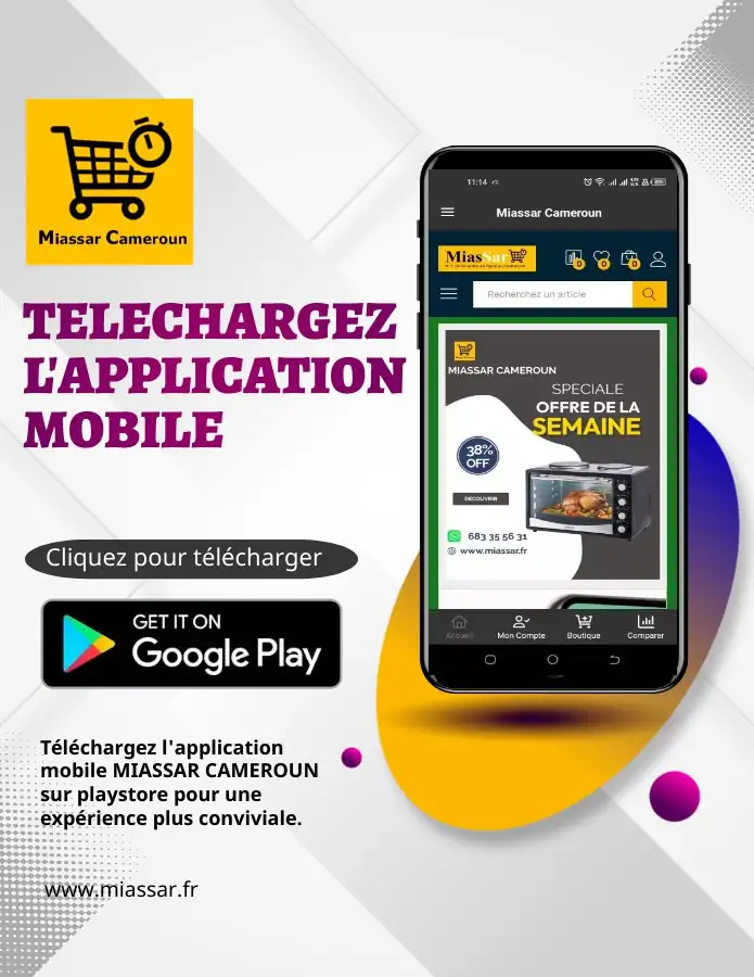 Le site de vente en ligne Miassar Cameroun est un exemple qui illustre ce cas. Les utilisateurs ont la possibilité de travailler directement dans la version web: Aller à la page d’accueil, ou d’utiliser l’application mobile pour une expérience plus conviviale et une navigation fluide. Télécharger l’application Mobile Miassar Cameroun ici.