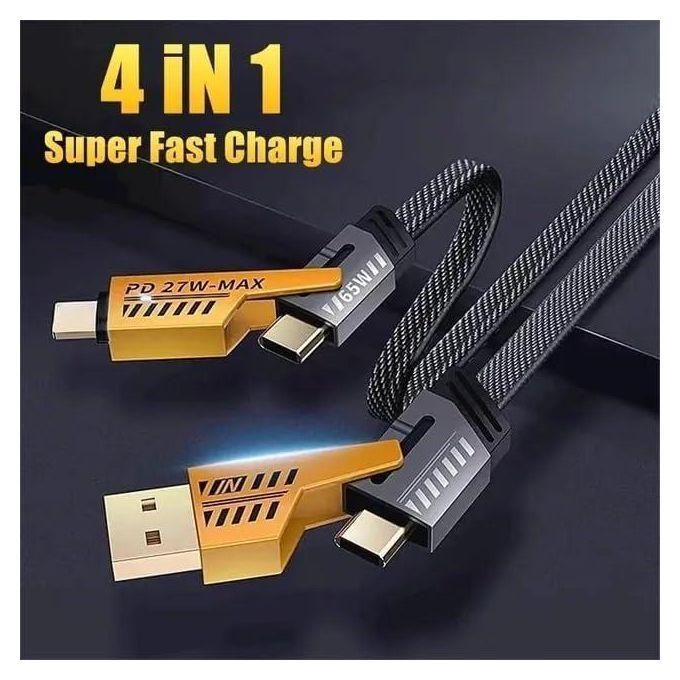 Câble Charge Rapide Plat 4 en 1 Cumyss 65W Universel iPhone et Android