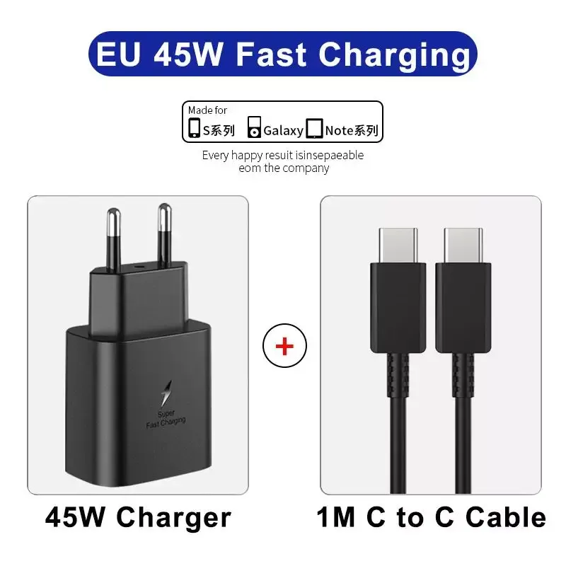 Chargeur Rapide Samsung 45W USB-C PD Power Delivery Câble Inclus