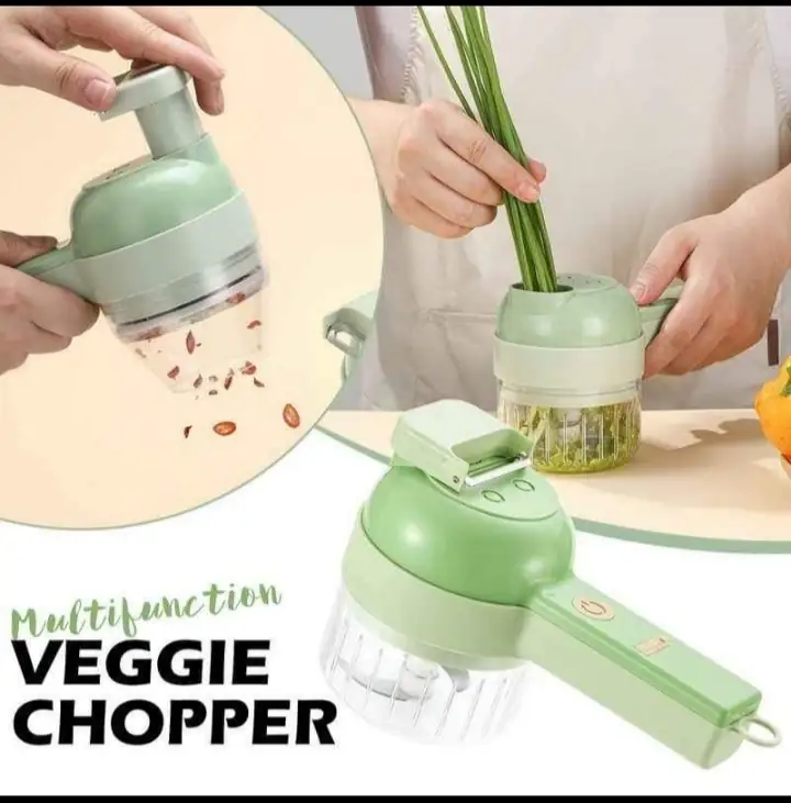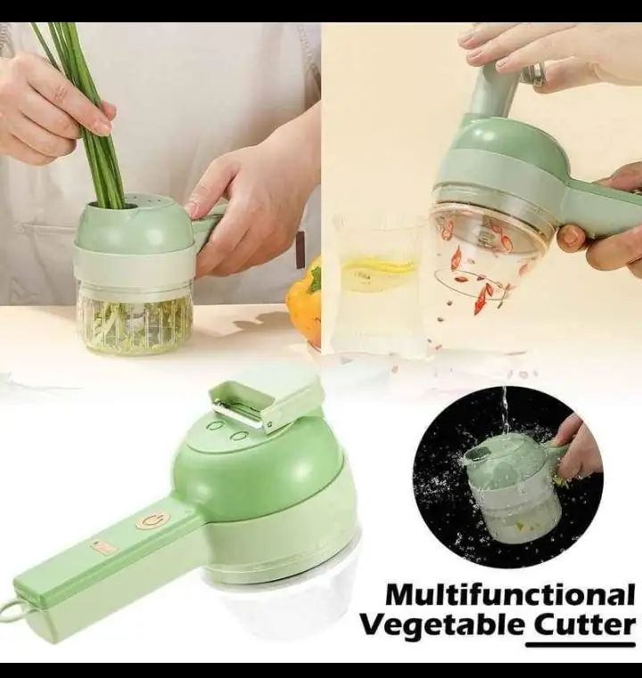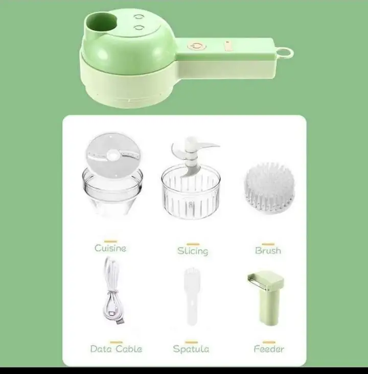 Ensemble Coupe-Légumes Electrique 4 en 1 : Hachoir électrique universel à 4 fonctions (presse-ail, coupe-oignon portable, peut également vous aider avec la vaisselle, une machine à usages multiples. Le mini hachoir électrique dispose dun trou d’alimentation ouvert, ce qui vous évite d’avoir à ouvrir et à tordre le couvercle. La conception ergonomique brise le mode de clic