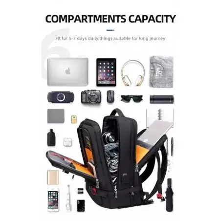 Découvrez le sac à dos de voyage extensible ultime pour homme, avec une capacité généreuse de 42L pour tous vos besoins en déplacement. Ce sac à dos est conçu pour accueillir un ordinateur portable de 17 pouces en toute sécurité, avec un espace multicouche pour organiser facilement vos affaires.