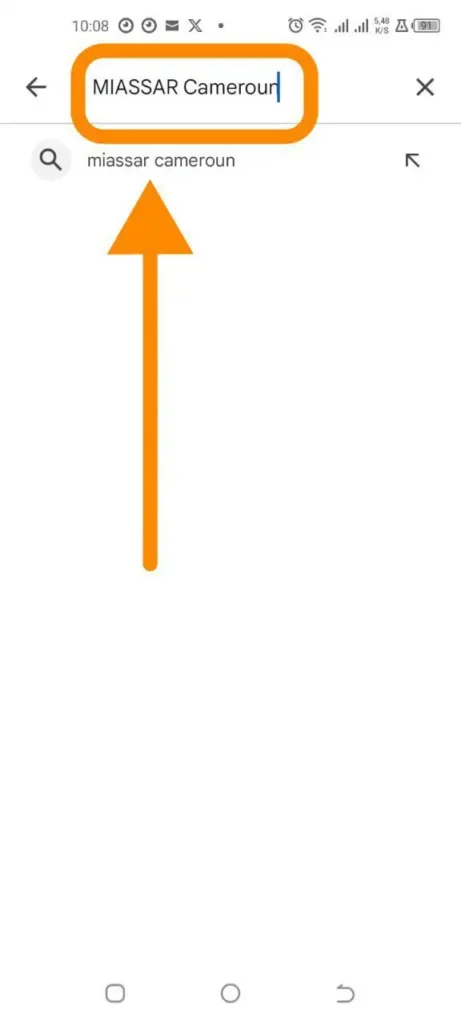 Une fois dans le Google Play Store, utilisez la barre de recherche en haut de l’écran pour rechercher l’application en saisissant le nom Miassar Cameroun pour la trouver plus facilement.